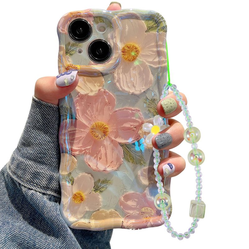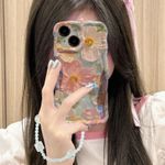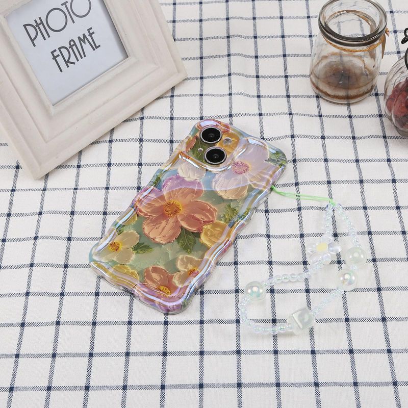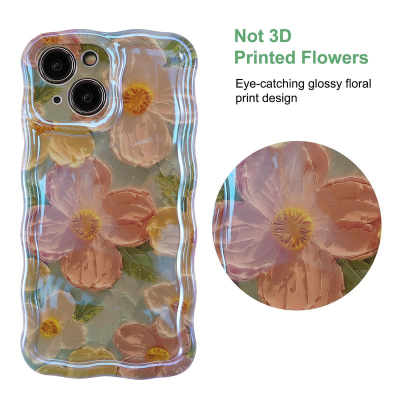 Jusy Pintura al óleo compatible con iPhone 12, colorido retro floral lindo marco ondulado rizado