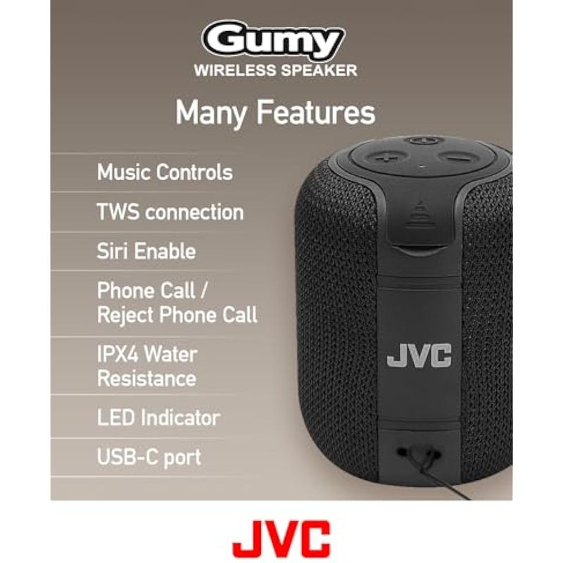 JVC Altavoz inalámbrico portátil Gumy con sonido envolvente, Bluetooth 5.3, ligero, capacidad TWS,
