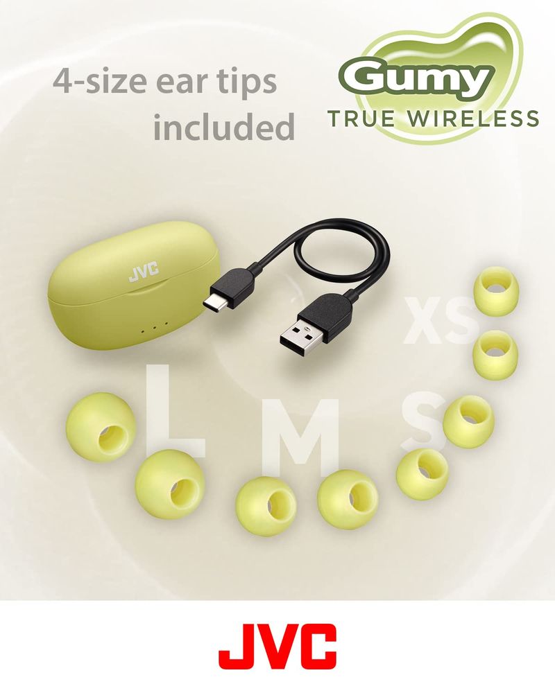 Los nuevos auriculares inalámbricos Gumy Mini trure de JVC son cómodos e incluyen auriculares SML para un ajuste ideal. La clasificación IPX4 ofrece resistencia al agua a las salpicaduras, lo que hace que este par sea ideal para uso en exteriores. La tecnología Bluetooth 5.3 garantiza una conexión confiable. Estos auriculares inalámbricos JVC vienen con un estuche de carga compacto, que ofrece hasta 22 horas de reproducción.