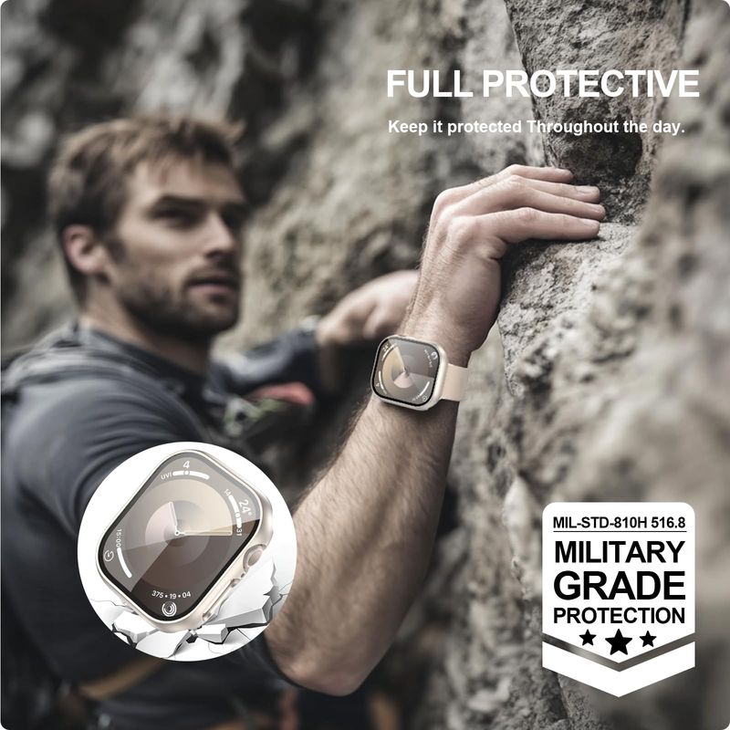 Diseño 2 en 1: funda de policarbonato duradera integrada con protector de pantalla de vidrio templado transparente HD, protege todo el contorno de tu Apple Watch de 1.575 in de arañazos, golpes y caídas accidentales. Muy fácil de instalar por su diseño a presión y carga directamente.