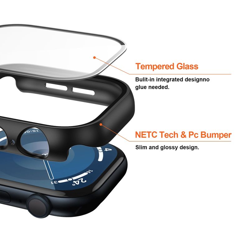 Diseño 2 en 1: funda de policarbonato duradera integrada con protector de pantalla de vidrio templado transparente HD, protege todo el contorno de tu Apple Watch de 1.575 in de arañazos, golpes y caídas accidentales. Muy fácil de instalar por su diseño a presión y carga directamente.