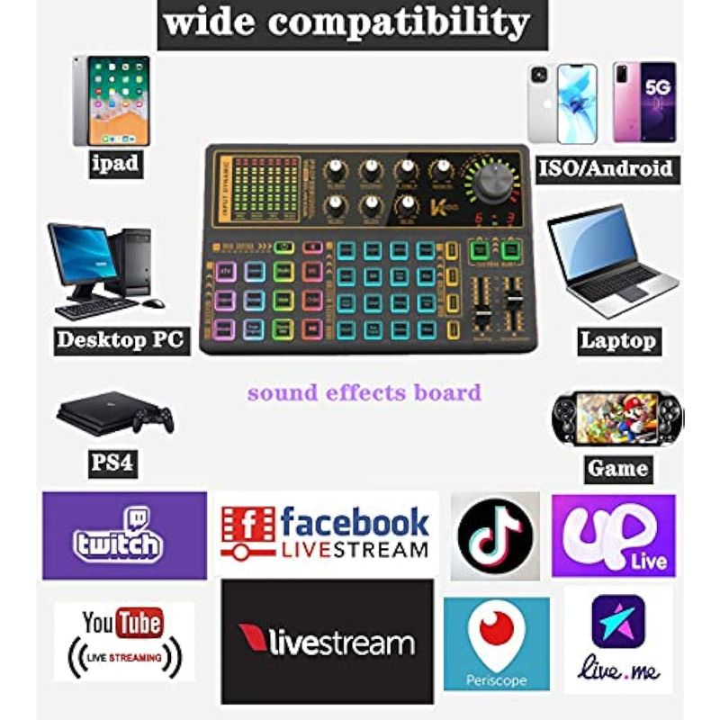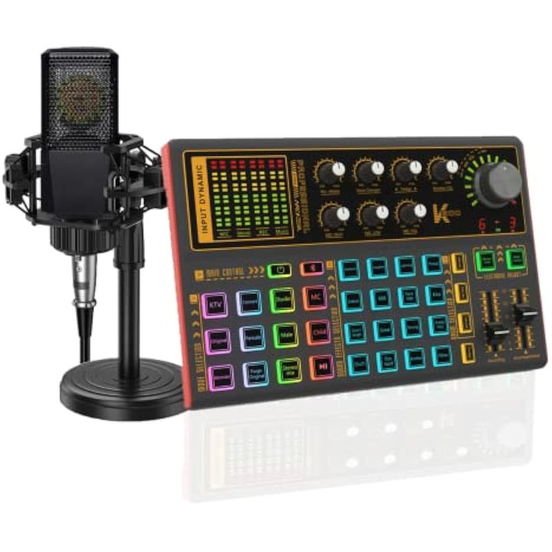 AUDIOConsola DJK300 - Juego de tablero de efectos de sonido, tarjeta de sonido con cambiador de voz de luz LED con
