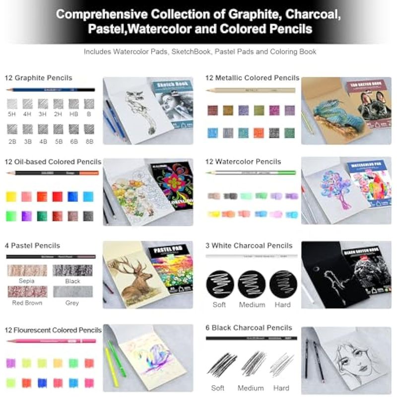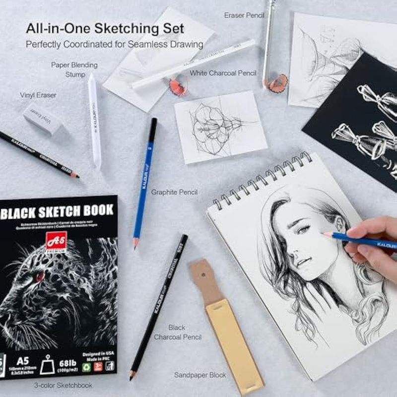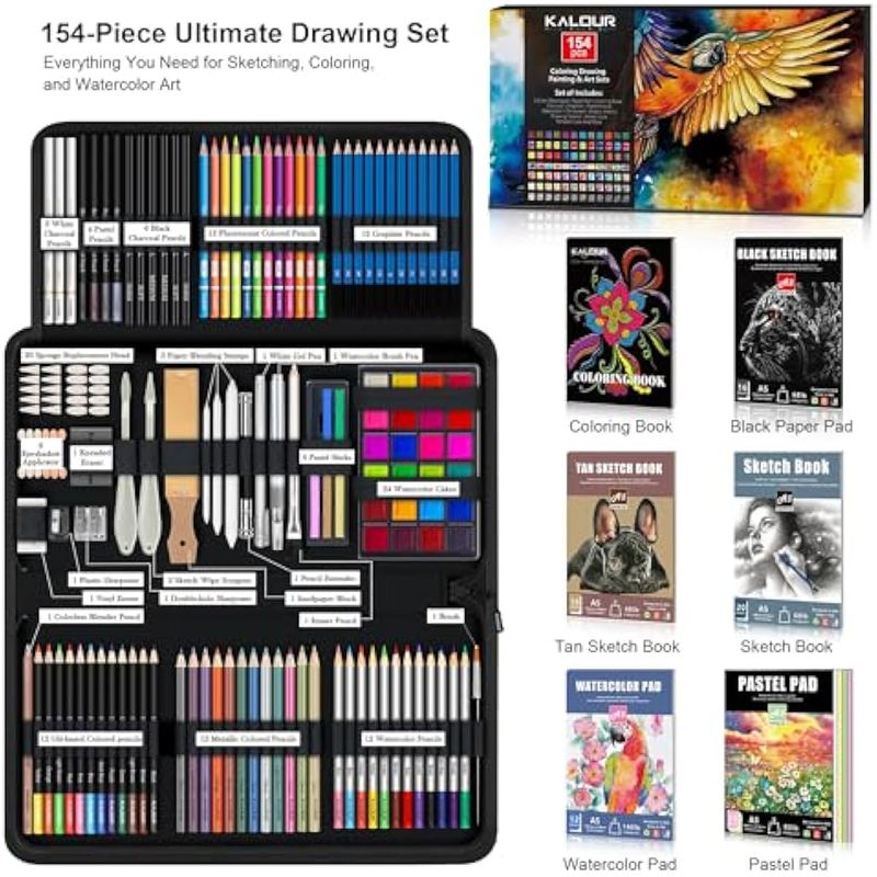 KALOUR 154 suministros de arte, kit de dibujo y boceto con cuaderno de bocetos, libro tutorial,