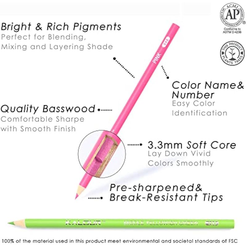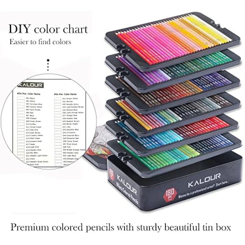 ARTE, LIBRERÍA Y OFICINAMATERIALES DE ARTEKALOUR Juego de 180 lápices de colores para adultos artistas, núcleo suave de pigmento rico, 12