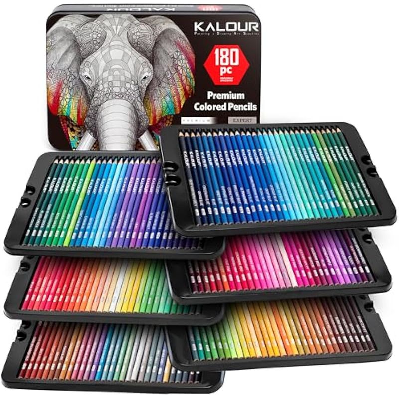 KALOUR Juego de 180 lápices de colores para adultos artistas, núcleo suave de pigmento rico, 12