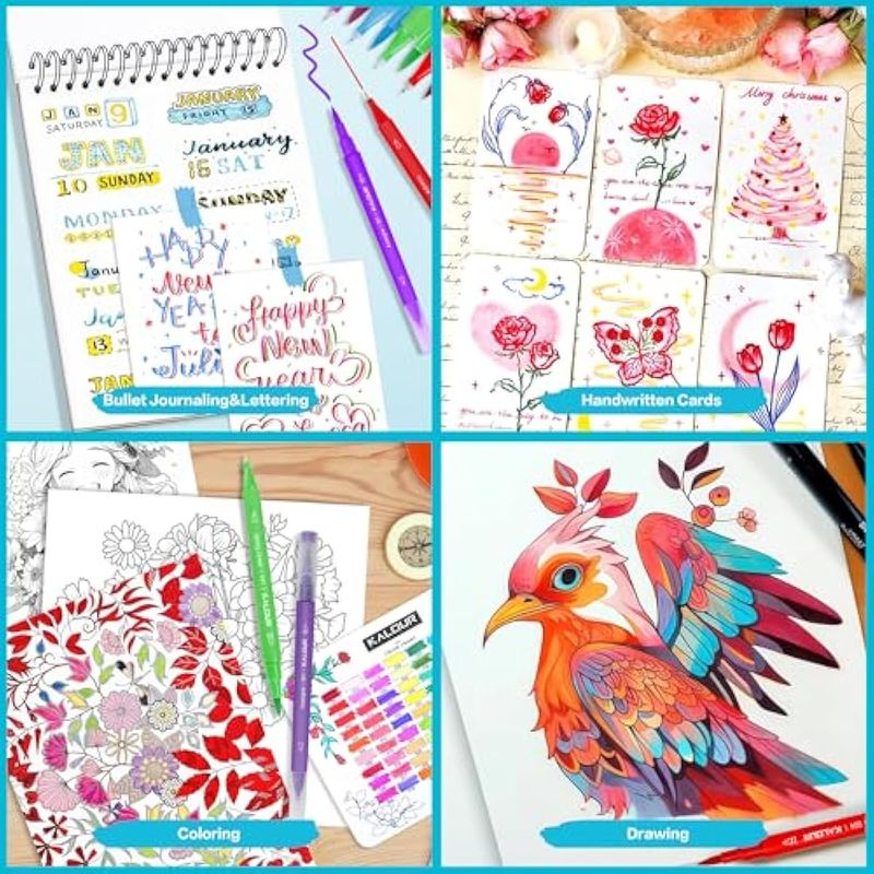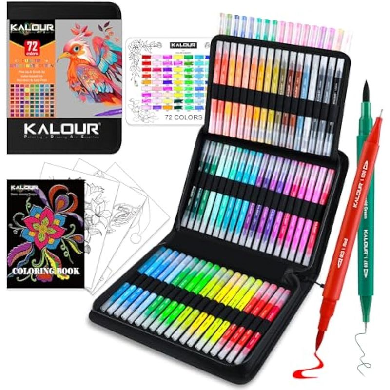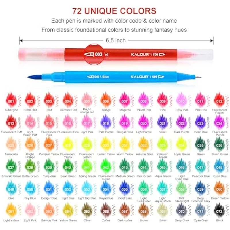 KALOUR Juego de 72 rotuladores artísticos, pincel de doble punta y punta fina, número de color y