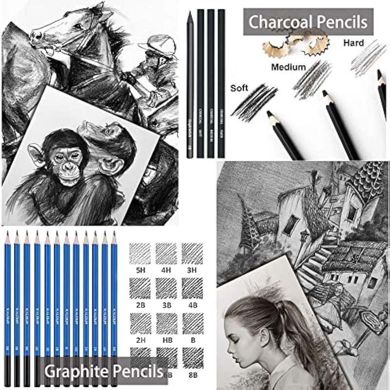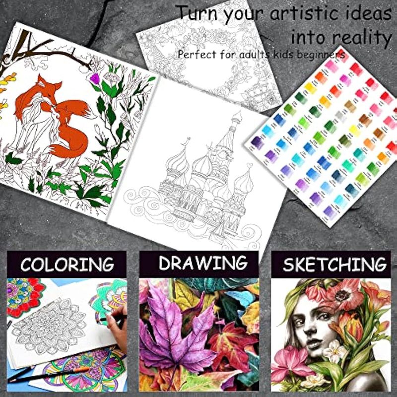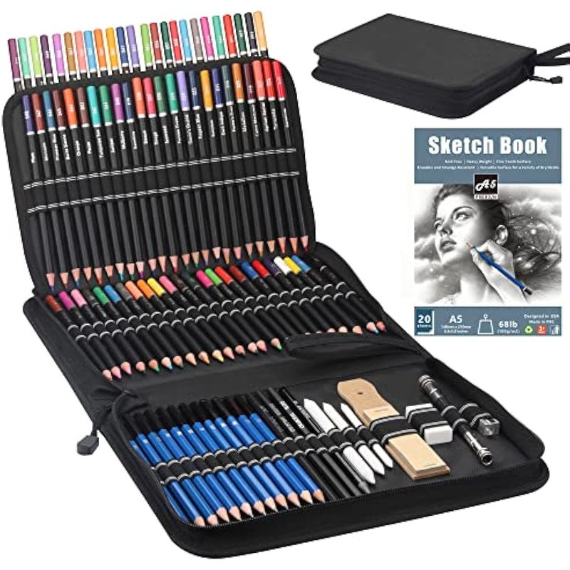 Kalour Paquete de 96 kits de dibujo para bocetos, incluye 72 lápices de colores y 24 kits de bocetos