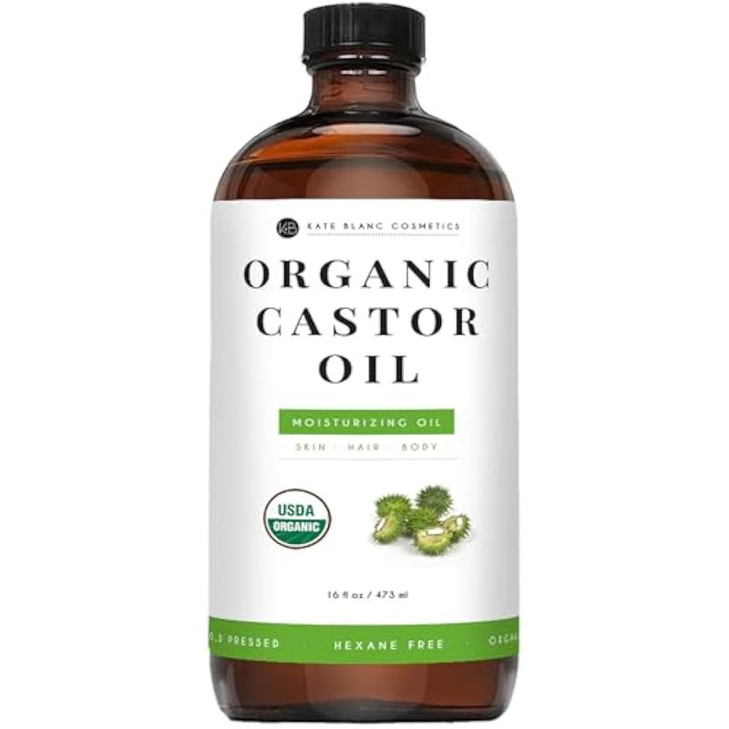 KATE BLANC COSMETICS ACEITE DE RICINO ORGáNICO PARA EL CRECIMIENTO DEL CABELLO Y EL CUERPO (16OZ). 100% PURO PRENSADO EN FRíO, SIN HEXANO, SIN REFINAR EN BOTELLA DE VIDRIO