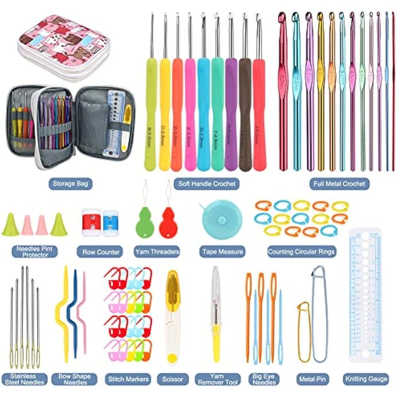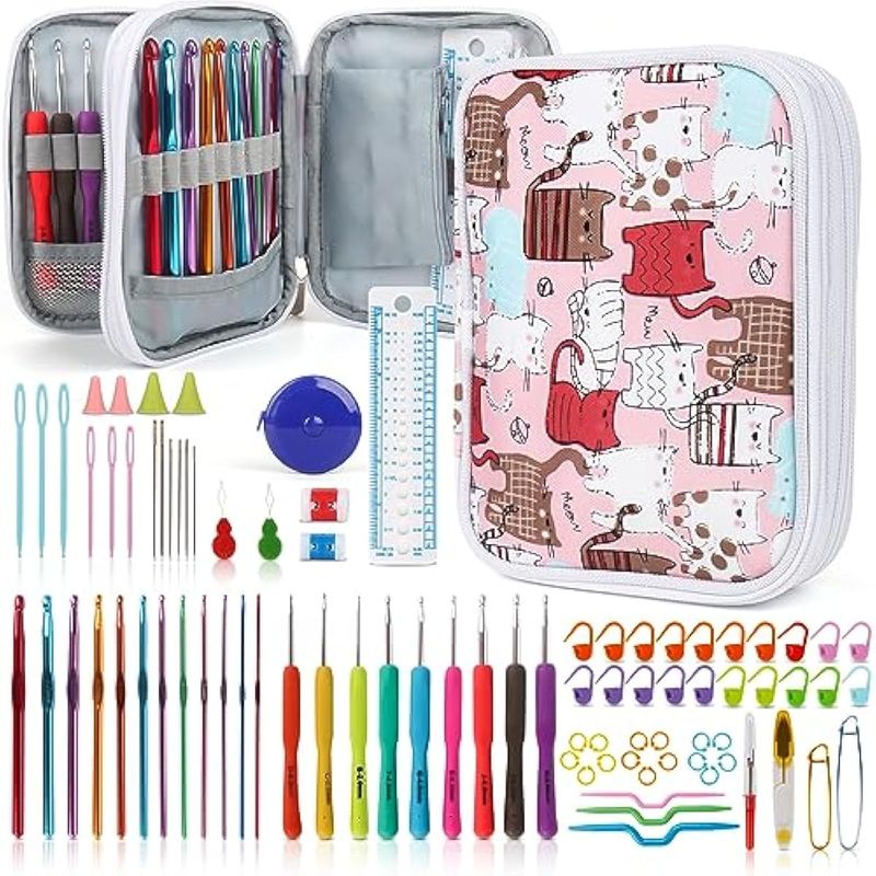 Katech - Kit de ganchos de ganchillo con estuche, juego de 85 piezas de ganchillo, ganchos