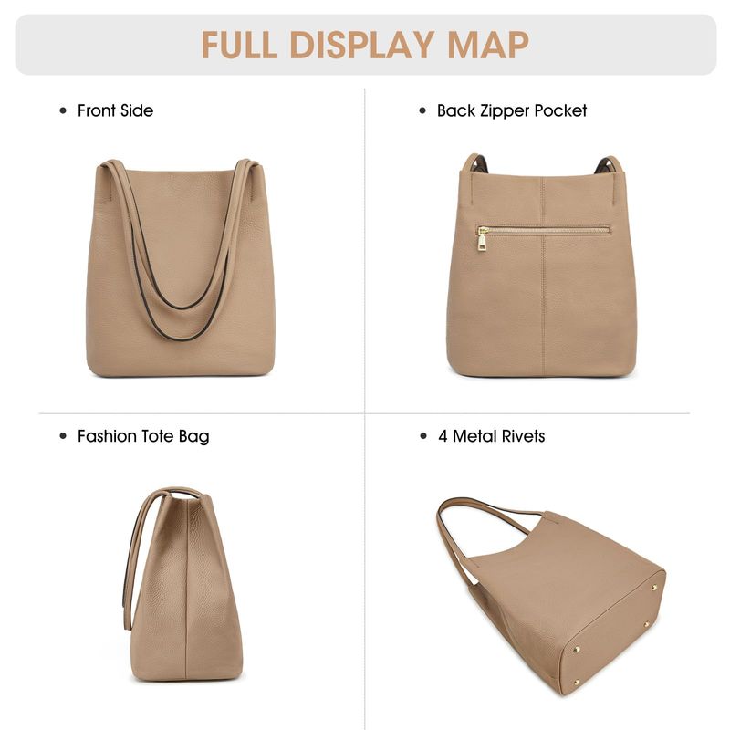Kattee Bolso de hombro de cuero genuino suave para mujer con cierre magnético superior