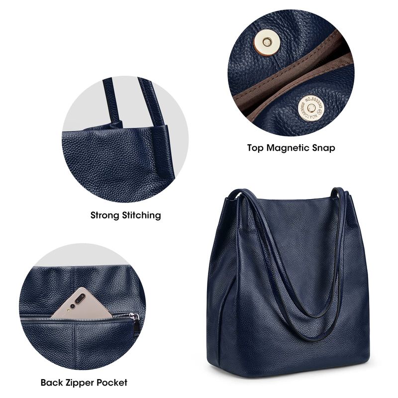 Kattee Bolso de hombro de cuero genuino suave para mujer con cierre magnético superior