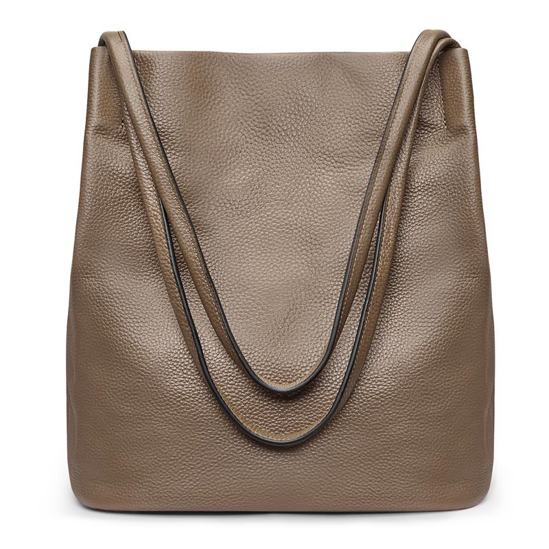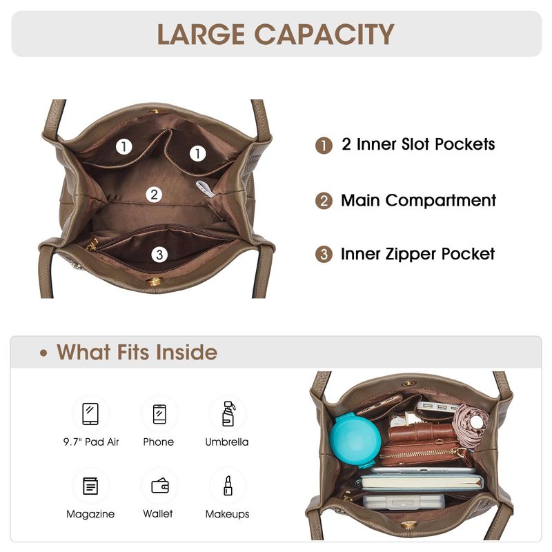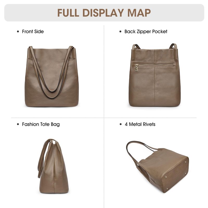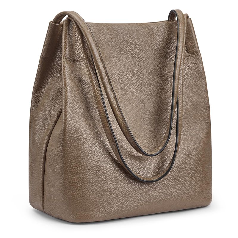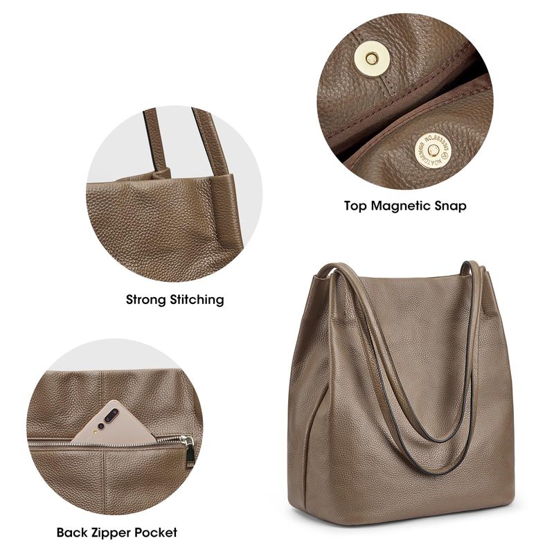 Kattee Bolso de hombro de cuero genuino suave para mujer con cierre magnético superior