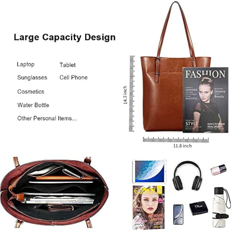Kattee Bolso de hombro del totalizador del cuero genuino de la vendimia para la mujer