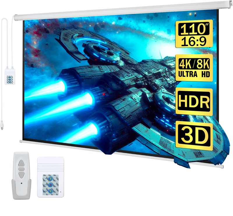 Material de la pantalla: con un ángulo de visión de 180° y 1.2 de ganancia, pantalla negra de 3 capas con superficie texturizada. 4K Ultra HD y proyección 3D activa lista. Fácil de limpiar.