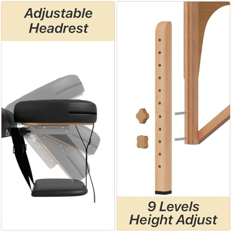 Portátil y plegable: es plegable con un compacto diseñado para plegarse en un paquete compacto. La mesa de masaje incluye una bolsa de transporte duradera con una correa de hombro ajustable. Es fácil moverse y puedes disfrutar o dar masajes relajantes dondequiera que vayas.