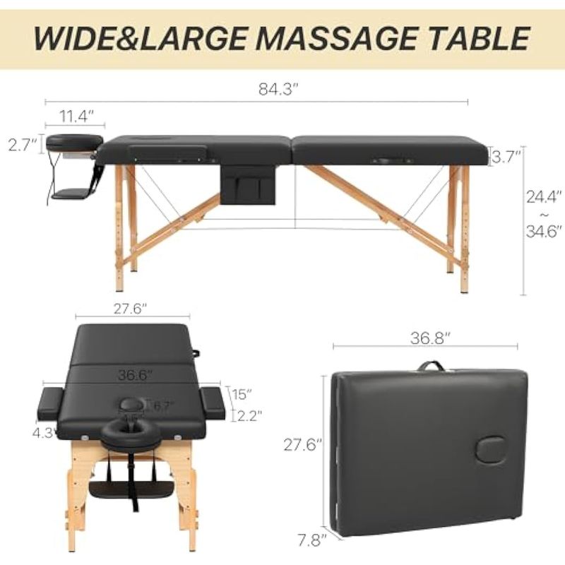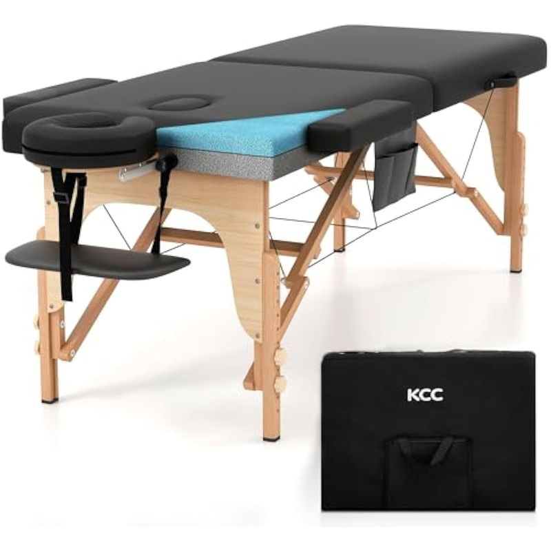 KCC MESA DE MASAJE DE ESPUMA VISCOELáSTICA DE ALTA CALIDAD, PORTáTIL, PLEGABLE, ALTURA AJUSTABLE, 84 PULGADAS DE LARGO, 28 PULGADAS DE ANCHO, MESA DE TATUAJE CON ACCESORIOS Y FUNDA DE TRANSPORTE, FáCIL DE INSTALAR