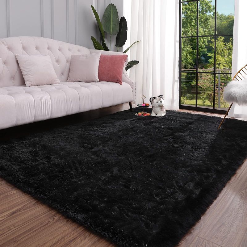 Keeko Alfombra de área de color rosa esponjosa, bonita alfombra de pelo largo, extra suave y peluda,
