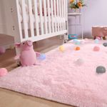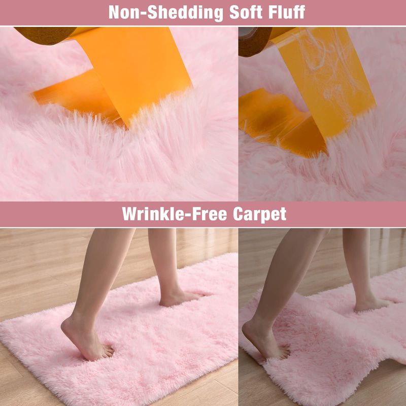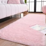 Keeko Alfombra de área de color rosa esponjosa, bonita alfombra de pelo largo, extra suave y peluda,