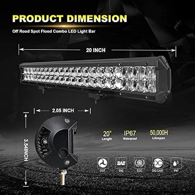 KEENAXIS - Barra de luz LED de 20 pulgadas, 126 W, 5D, haz de inundación, 4 unidades, 4 unidades, 4