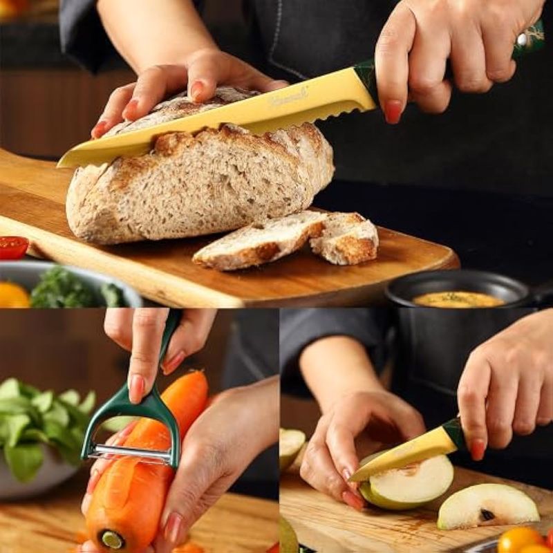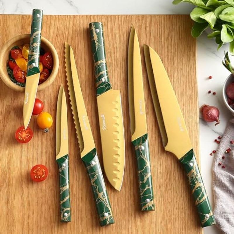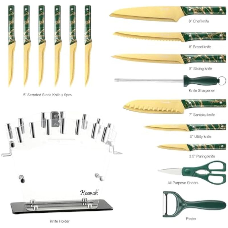 HOGARBAZARUTENSILIOS DE COCINAKeewah Juego de cuchillos, juego de cuchillos de cocina de 16 piezas con soporte acrílico, dorado