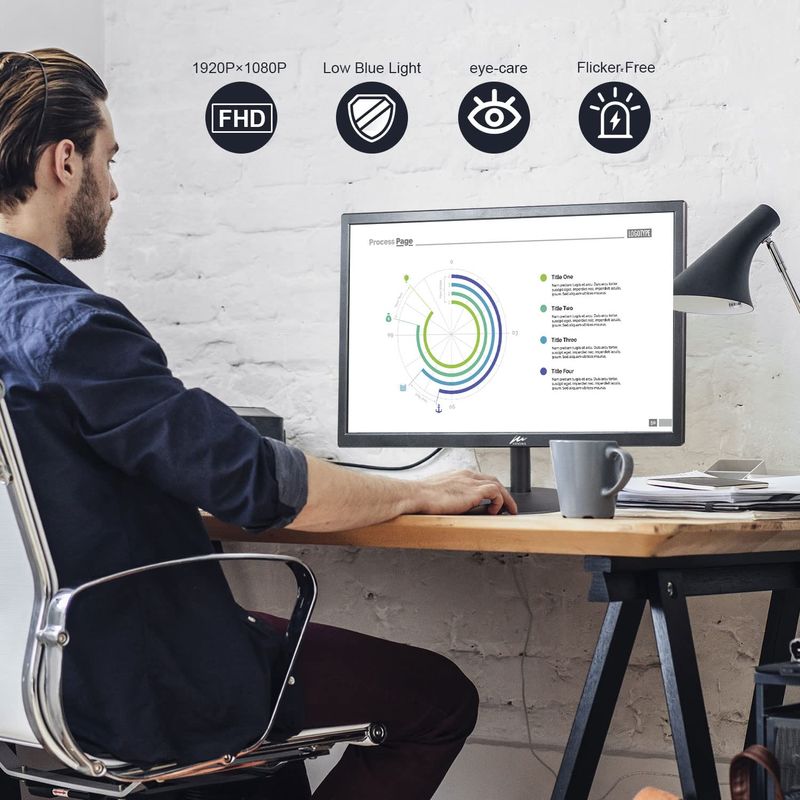 Kenowa Monitor de PC 21.5 pulgadas FHD 1920x1080P Monitor de computadora con puerto HDMI y VGA para