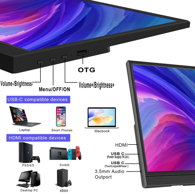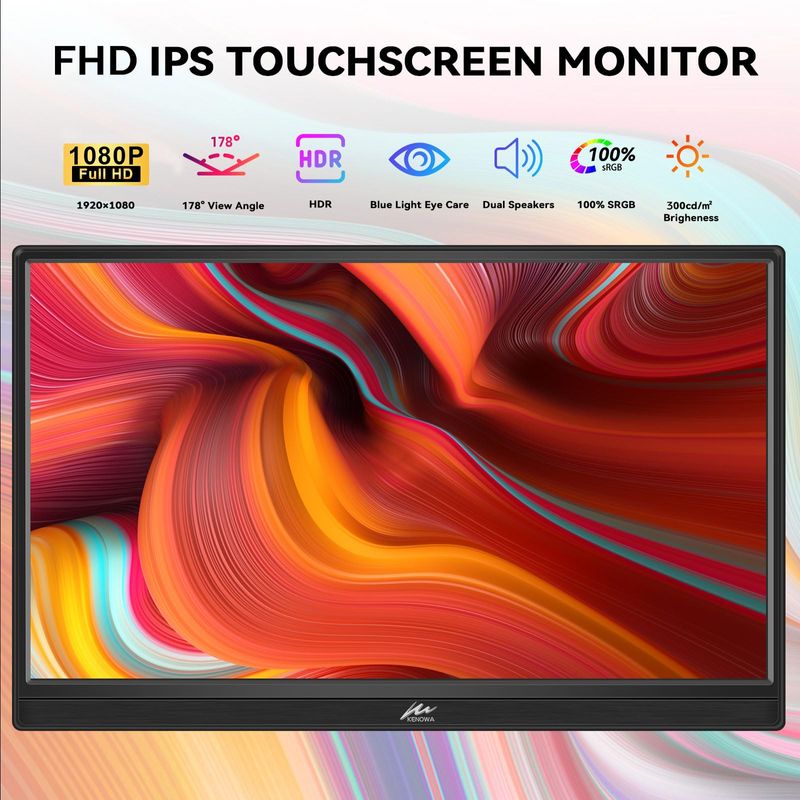 Kenowa Monitor portátil con pantalla táctil de 15.6 pulgadas, pantalla táctil HDR IPS 1080P 16:9 con