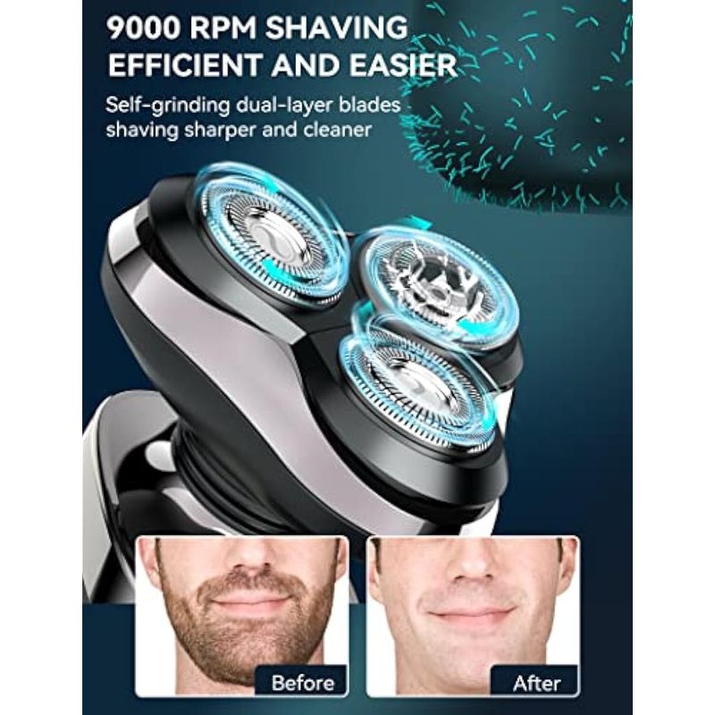 Afeitadora eléctrica para hombres: cuchillas de doble capa autoafiladas que recortan la barba más nítida y limpia. Afeitado de 9000 rpm, eficiente y más fácil. Afeita fácilmente todo tipo de barbas, como barba gruesa, barba suave, barba fina, barba tupida. La maquinilla de afeitar eléctrica para hombres te ofrece una barba suave y sedosa y el mejor aspecto en pocos minutos para cualquier vacaciones o escapada romántica.
