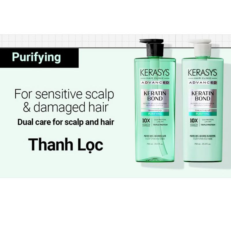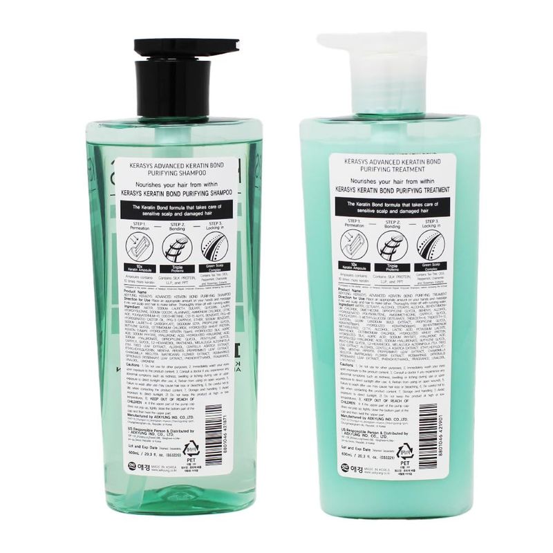 Kerasys Advanced Keratin Bond Champú y Tratamiento Set 20.2 fl oz / 20.3 fl oz (Purificante)