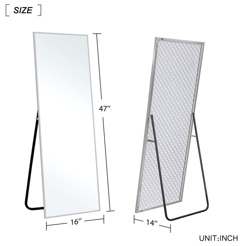 Instalación: Este espejo de longitud completa incluye un soporte para poder instalarlo de pie apoyado en el soporte. Se puede colocar de pie autososteniéndose o apoyado contra la pared o colgado de la pared. Hay 12 agujeros en la parte posterior del espejo; puedes colgar el espejo utilizando simplemente dos tornillos. Consulta el método de instalación en el manual de instrucciones idioma español no garantizado