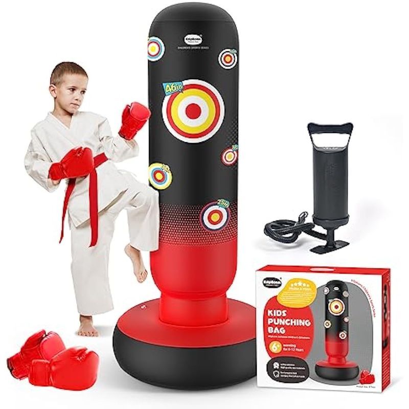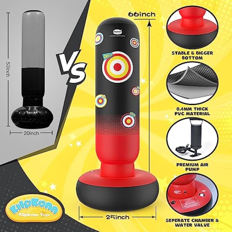 Kilpkonn Punching Bag for Kids, 67" Inflatable Punching Bag with Gloves and Pump