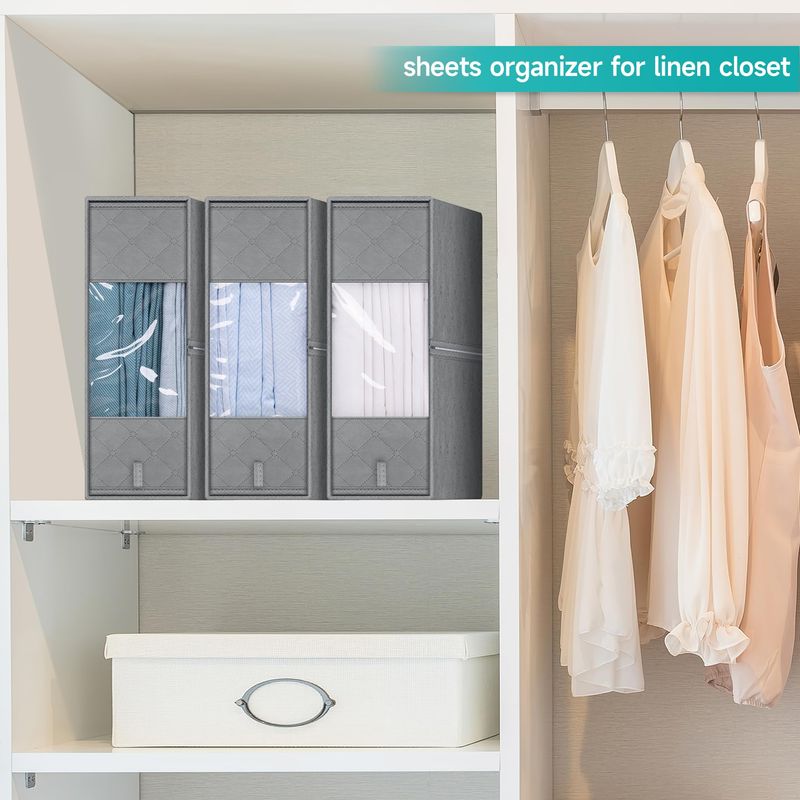 KIMBORA Organizador y almacenamiento de sábanas plegable, paquete de 3 organizadores de sábanas de