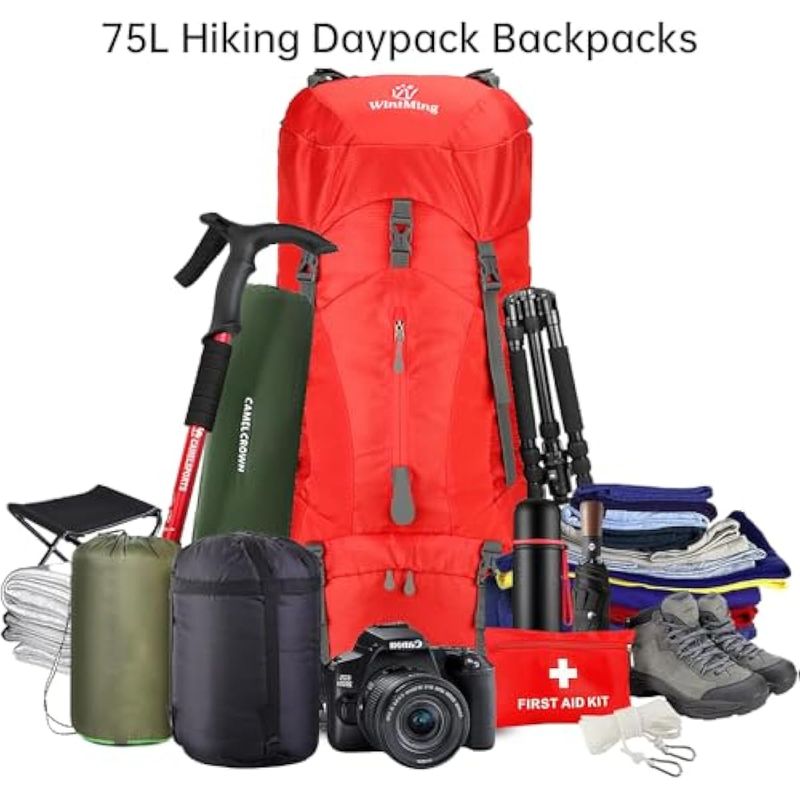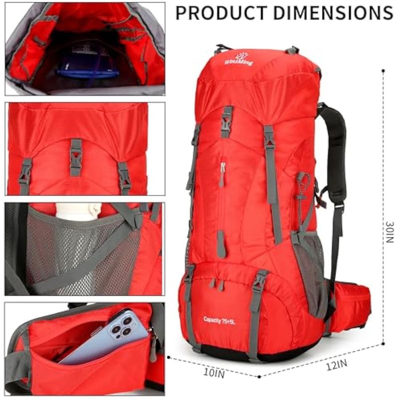 Mochila de gran capacidad: mochila de viaje con espacio de almacenamiento de 75 L 30 x 12 x 10 pulgadas, sostiene fácilmente todas tus cosas esenciales de camping y senderismo, el diseño de múltiples compartimentos es lo suficientemente conveniente para ayudarte a organizar aún más las cosas, y diseñó un almacén de zapatos separado.
