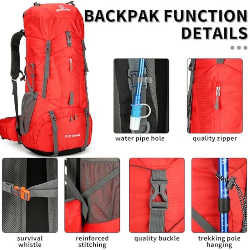 Garantía de servicio: Una gran mochila al aire libre para senderismo, camping, mochilero, trekking, viajes y escalada. Si tienes algún problema de calidad con la mochila que recibiste, no dudes en enviarnos un mensaje, proporcionamos un intercambio de un año.
