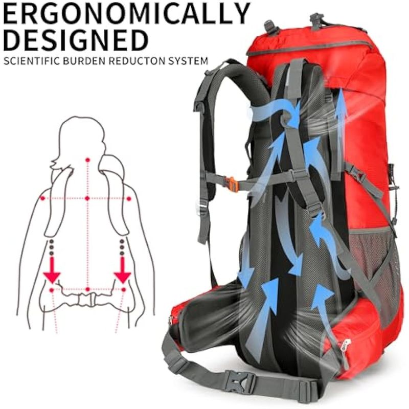 Impermeable y duradera: la mochila de camping está hecha de material de poliéster de alta densidad, que es resistente al desgarro, resistente al agua y antiabrasión, esta mochila de senderismo para hombre está equipada con una cala de lluvia en el bolsillo inferior, sin miedo a la lluvia fuerte, mantiene todo seco.