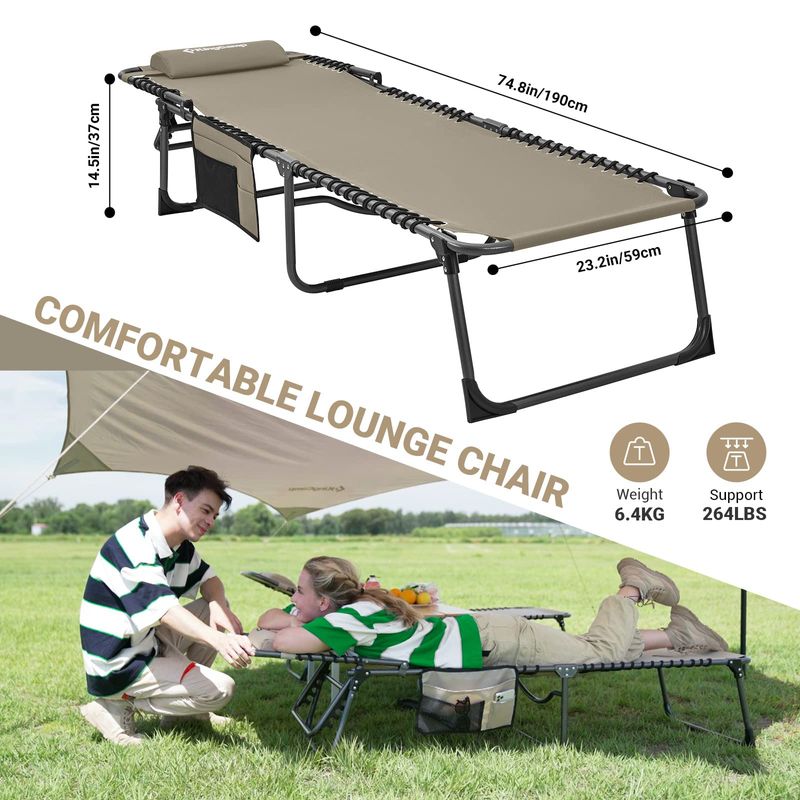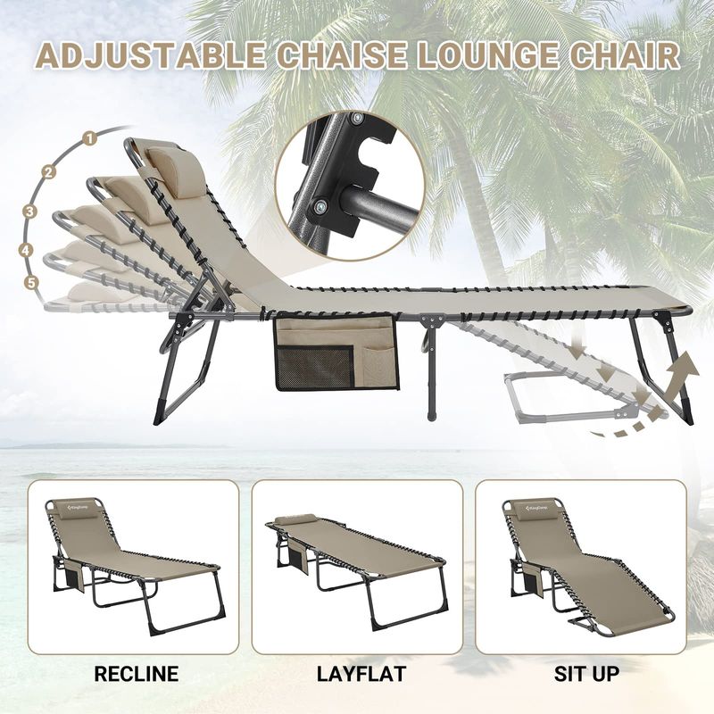 KingCamp - Silla larga para exterior plegable en 4, ideal para playa, tomar el sol, patio, piscina,