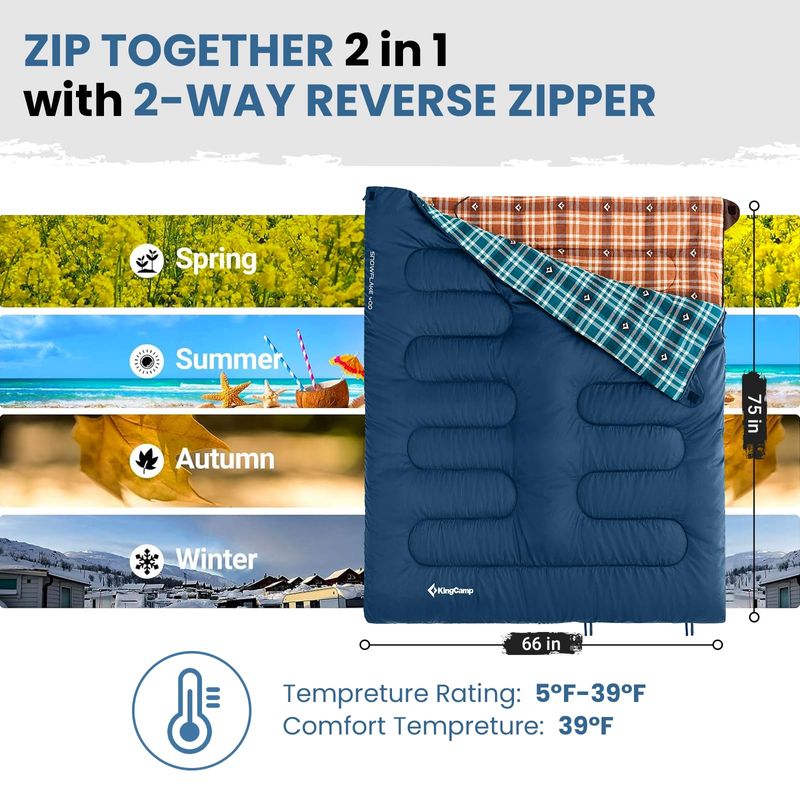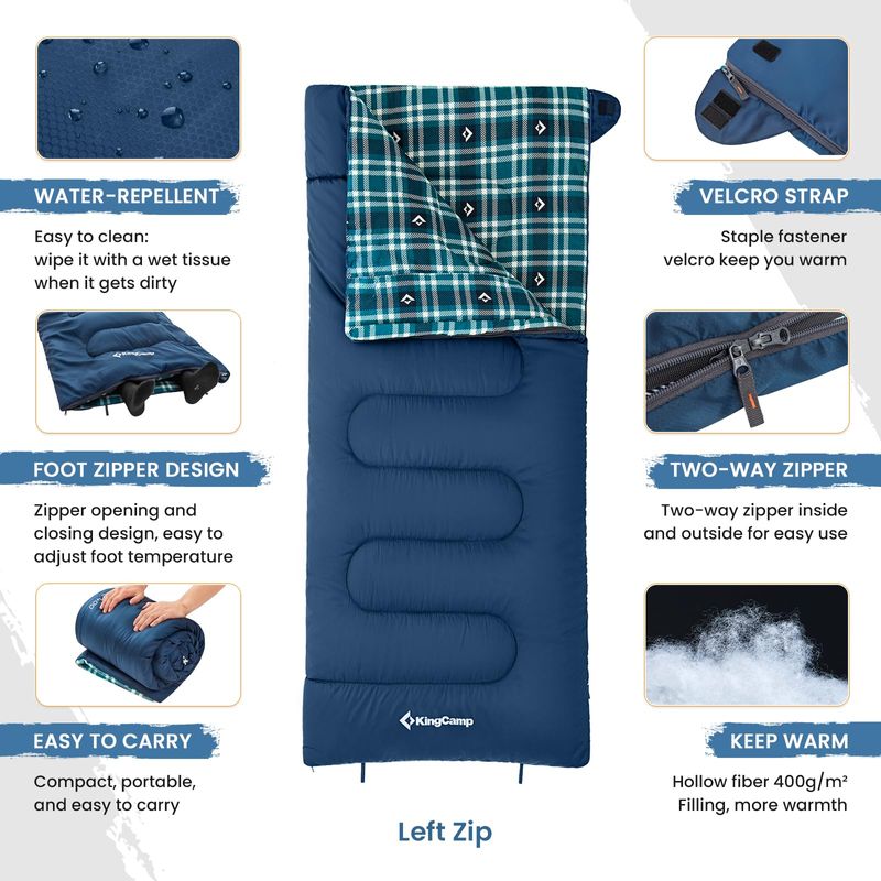 KingCamp Cotton Flannel Sleeping Bag, Big and Tall Sleeping Bags for Adults Cold Weather, Zip