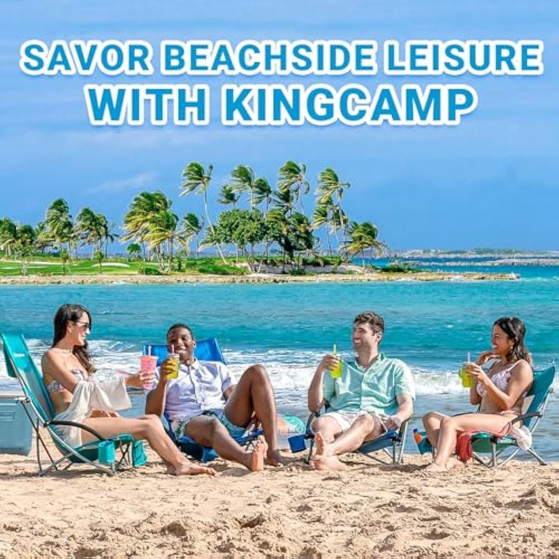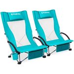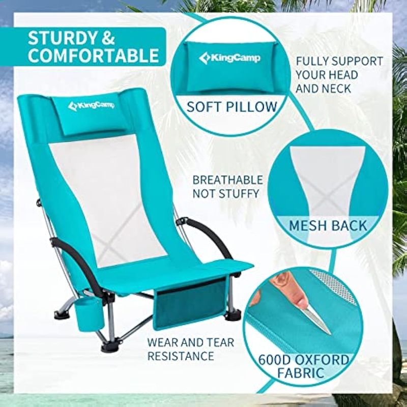 KingCamp Paquete de 2 sillas de playa ligeras y plegables con respaldo alto con soporte para tazas,