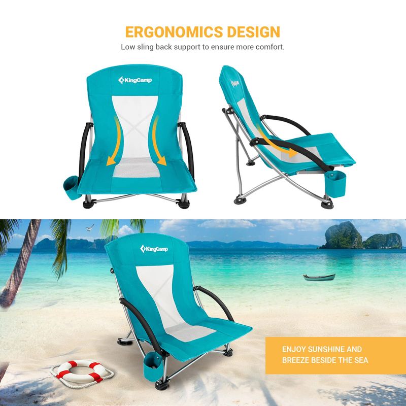 KINGCAMP SILLAS DE PLAYA PLEGABLES BAJAS PARA ADULTOS, SILLA PORTáTIL LIGERA CON REPOSACABEZAS Y SOPORTE PARA TAZAS, BOLSA DE TRANSPORTE, SILLA PLEGABLE PARA CAMPAMENTO DE ARENA, CONCIERTOS, VIAJES, 300 LIBRAS