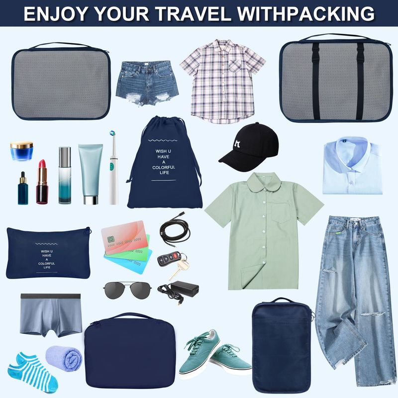 Kingdalux - Juego de 8 cubos de embalaje para maletas, organizadores de equipaje de viaje con bolsa