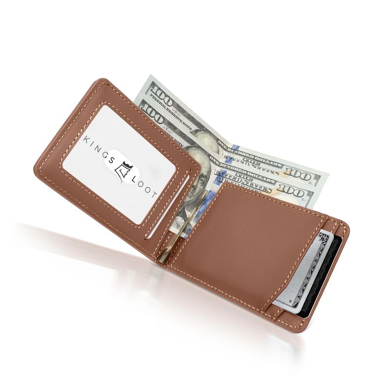 Kings Loot Carteras de cuero genuino Kings Fold para hombre, Marrón, Cartera Rfid