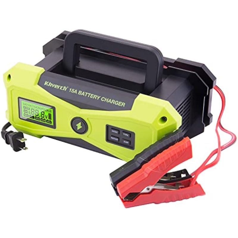 KINVERCH CARGADOR DE BATERíA DE COCHE DE 2/10/15A, 12V/24V, TOTALMENTE AUTOMáTICO, CARGADOR INTELIGENTE DE BATERíA CON MODO FRíO, IMPULSO PARA PLOMO áCIDO, LITIO (LIFEPO4)