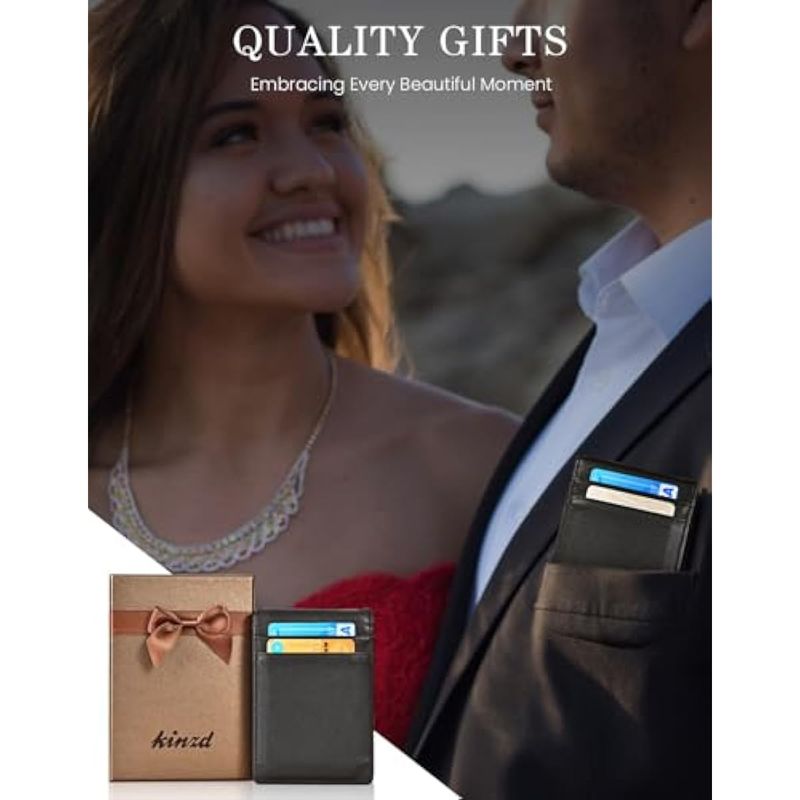 kinzd - Billetera delgada con clip para dinero, bloqueo RFID, cartera plegable minimalista para