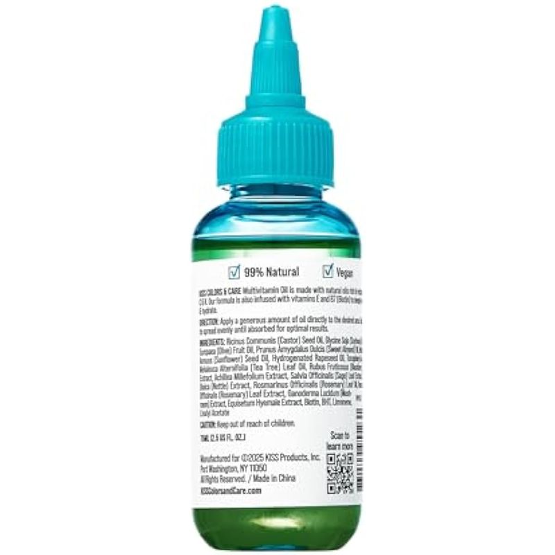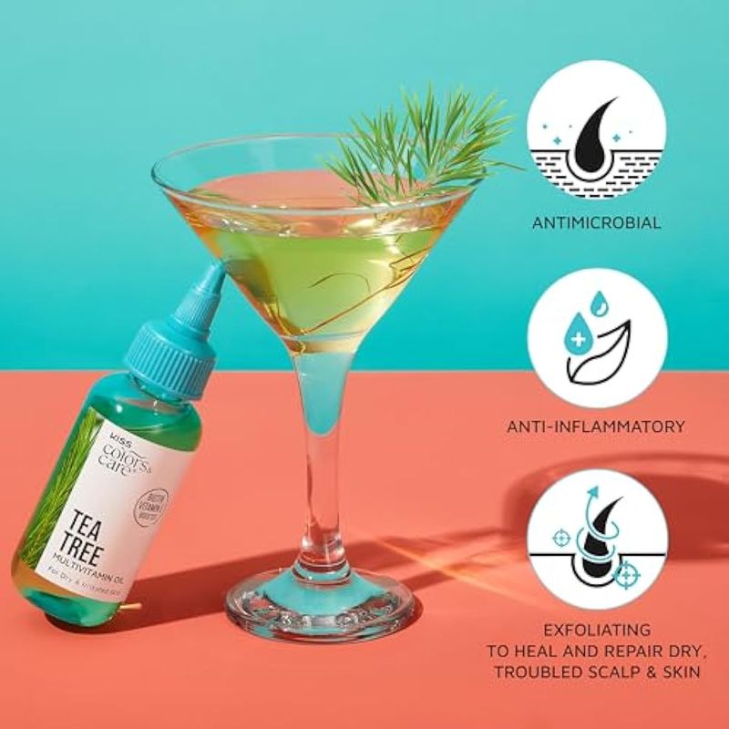 KISS COLORS & CARE ACEITE MULTIVITAMíNICO DE áRBOL DE Té PARA EL CUIDADO DEL CABELLO Y LA PIEL, INFUNDIDO CON BIOTINA, VITAMINA E Y ACEITES NATURALES PARA HIDRATACIóN Y REPARACIóN, 2.5 ONZAS LíQUIDAS