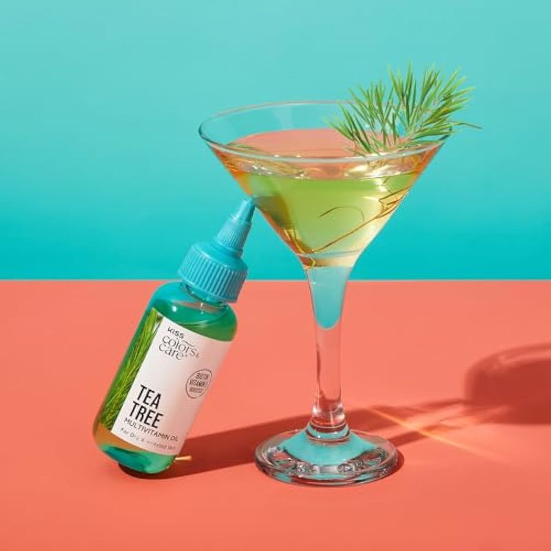 Nutre y rejuvenece tu cabello y piel: el aceite multivitamínico de árbol de té KISS Colors & Care está formulado para calmar la picazón, apoyar la salud del cuero cabelludo y promover una piel saludable; aceites premezclados para nutrir y calmar