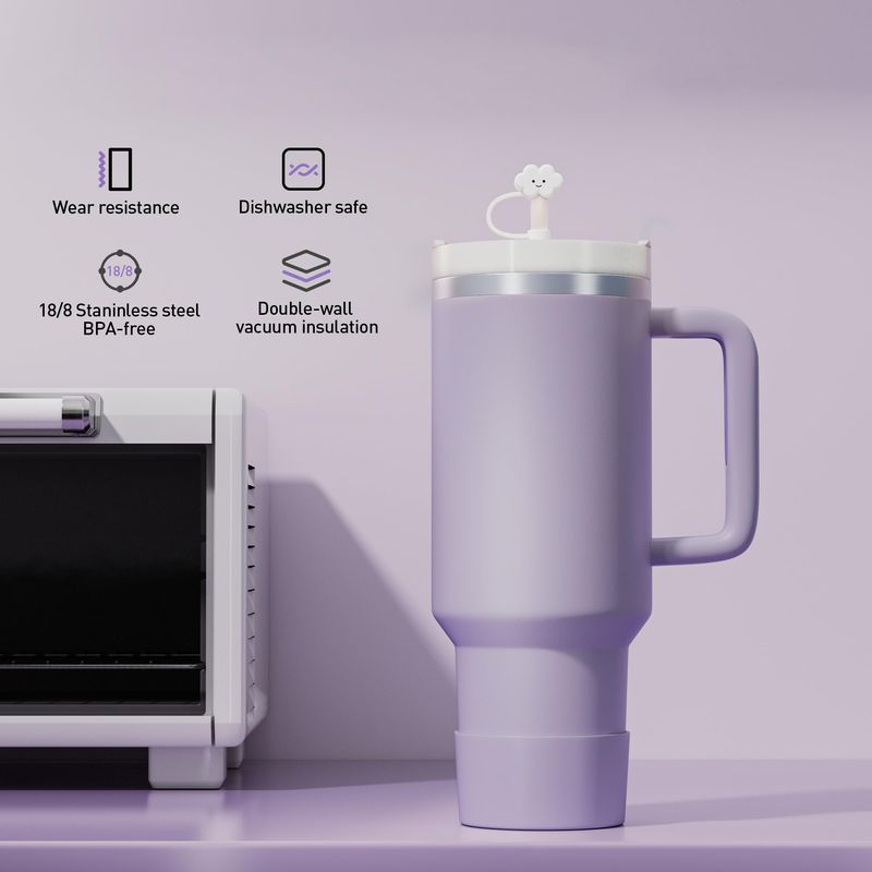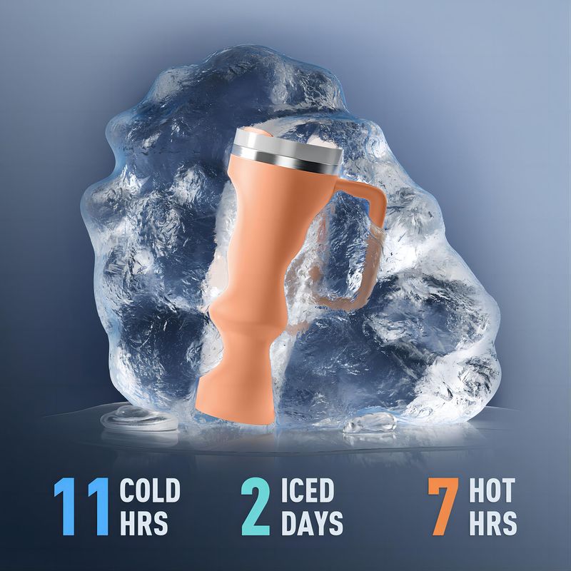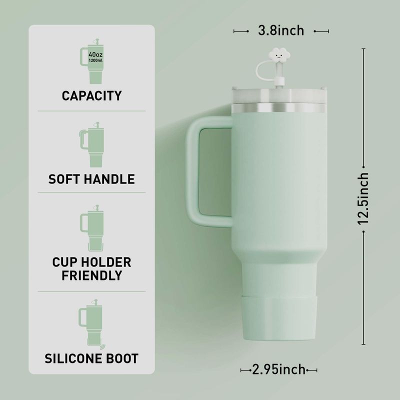 KISSKIND Vaso con asa para taza de viaje de 40 onzas, con tapa, aislamiento de acero inoxidable,