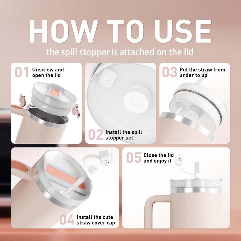 HOGARBAZARUTENSILIOS DE COCINAKISSKIND Vaso con asa para taza de viaje de 40 onzas, con tapa, aislamiento de acero inoxidable,