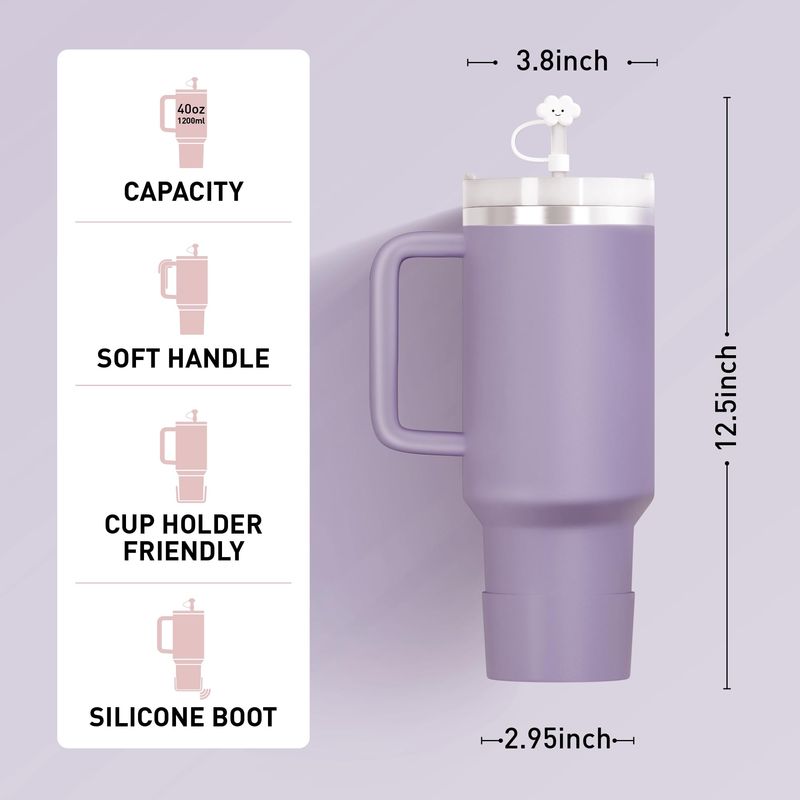 KISSKIND Vaso con asa para taza de viaje de 40 onzas, con tapa, aislamiento de acero inoxidable,