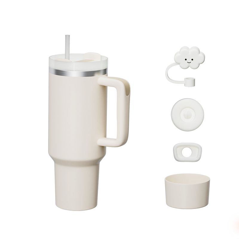 KISSKIND VASO CON ASA PARA TAZA DE VIAJE DE 40 ONZAS, CON TAPA, AISLAMIENTO DE ACERO INOXIDABLE, PARA AGUA, Té HELADO, CAFé, REGALO, CREMA