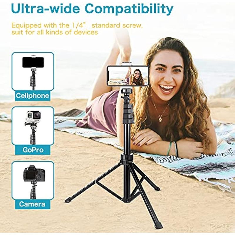Totalmente compatible y con Bluetooth. Características: este juego de trípode recién lanzado funciona con casi cualquier teléfono iOS o Android que quieras nombrar: incluyendo iPhone 11 Pro Max, 11 Pro, X, Samsung Galaxy S10+, Note 10 Plus, S7 Edge, S5 Mini, LG, Huawei, Xiaomi, etc. Viene con un control remoto Bluetooth para un funcionamiento de larga duración de hasta 30 pies