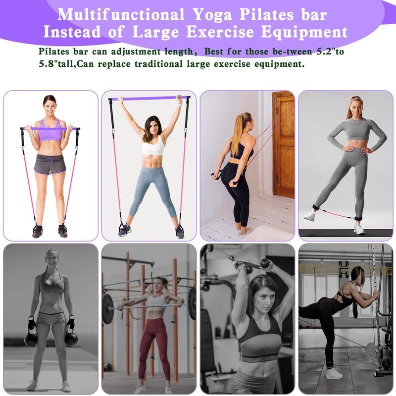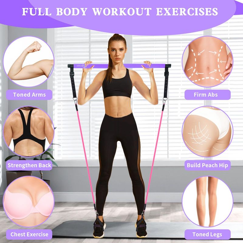 BELLEZA Y SALUDFITNESSACCESORIOS DEPORTIVOSKit de barra de pilates con bandas de resistencia (4 bandas de resistencia), barra de pilates de 3